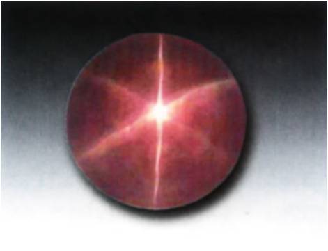 当水晶中含有两组以上定向排列的针状、纤维状包体时,其弧面形宝石表面可显示星光效应,一般为六射星光,也可有四射星光。